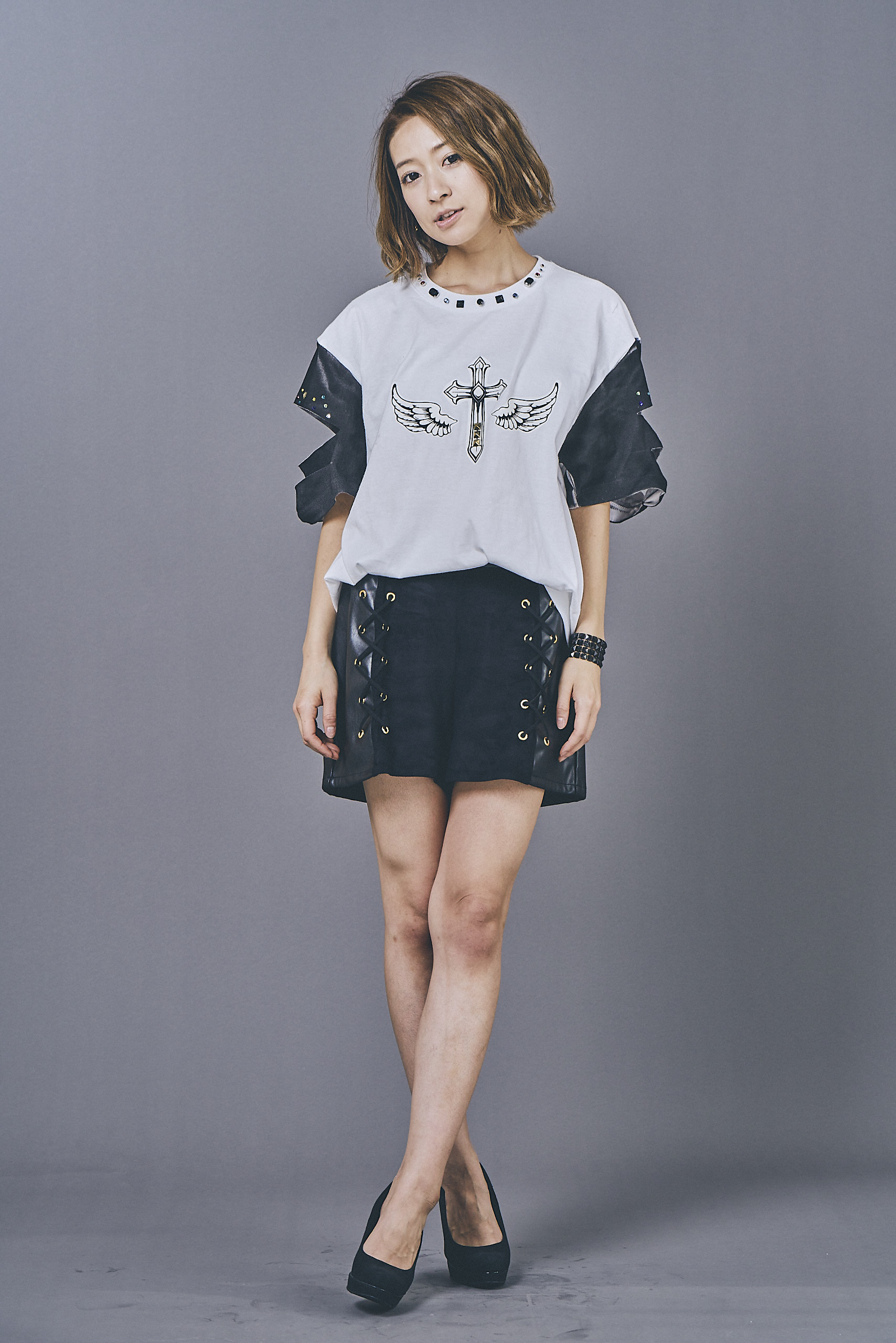 For the「Costume」Course, students drew up original designs based on a white T-shirt→practiced remake work→created a full body styling→and took portfolio pictures.
