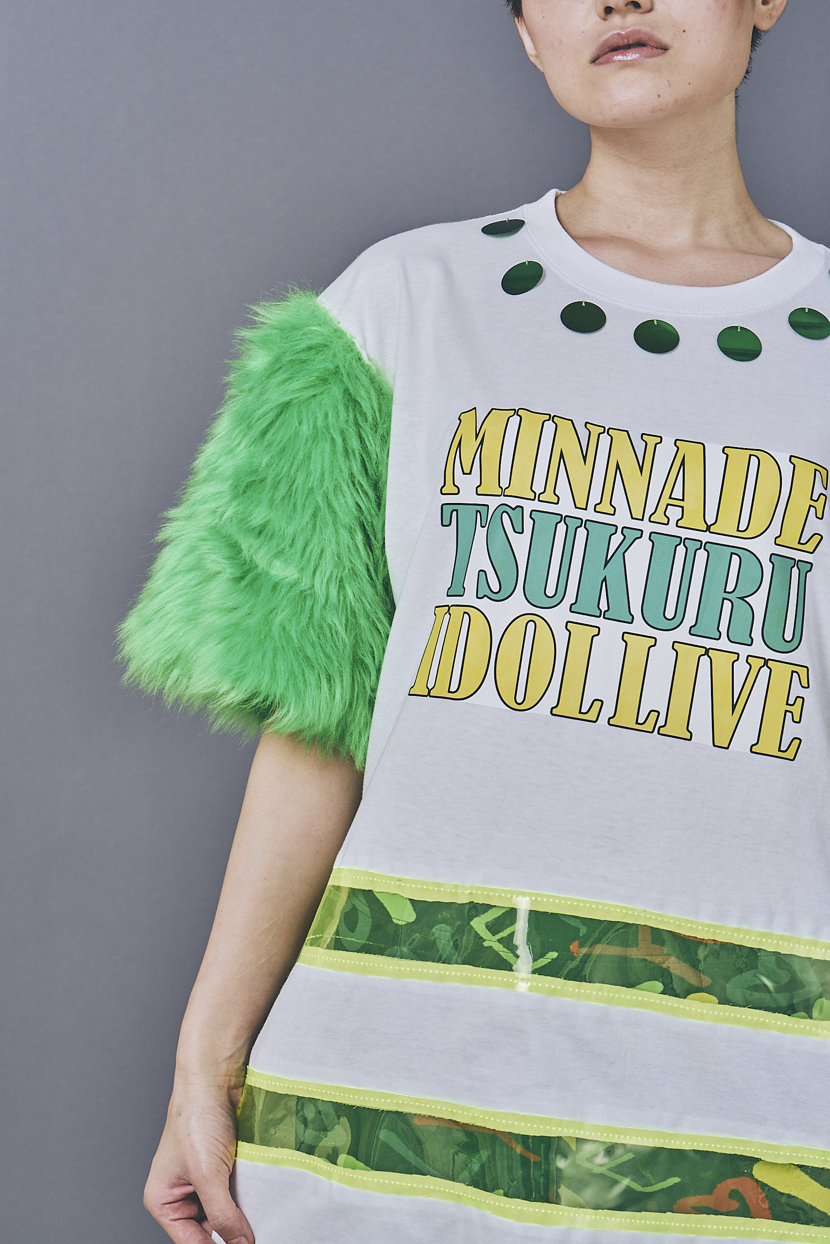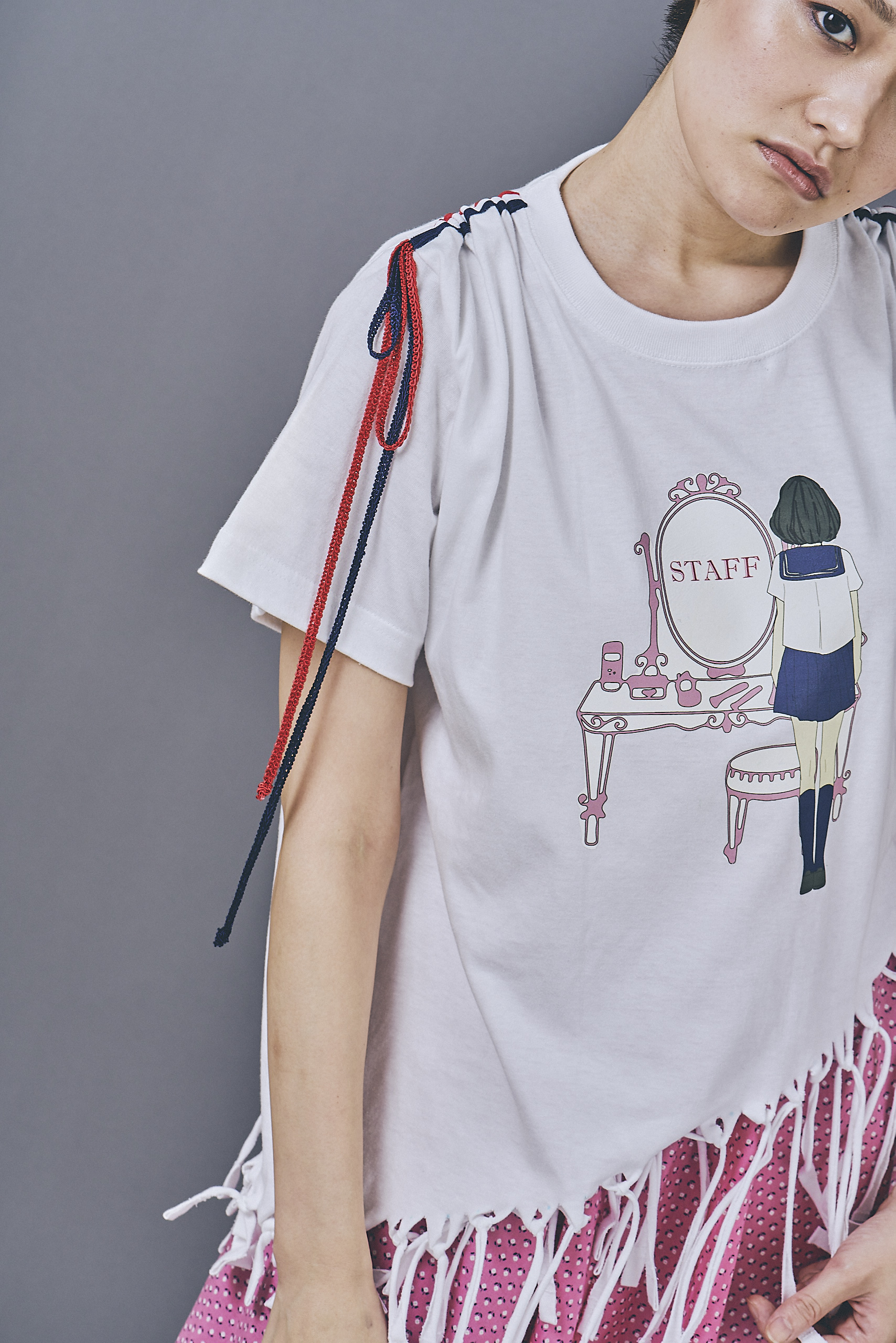 「Costume」course students whose task was to remake a plain white T-shirt and create a full body styling for the photo shoot.