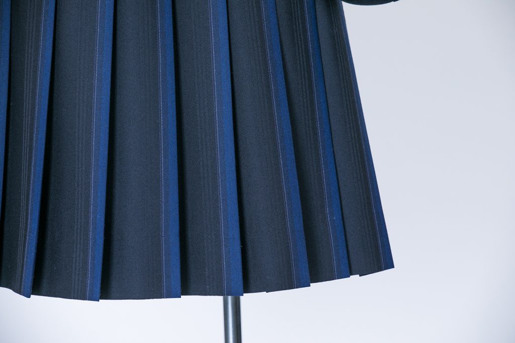 街中でこの制服を見るとハッ!として目で追っちゃいますね(笑)写真だと伝わりにくいけど、スカートの綺麗なネイビーブルーのグラデーションが歩いたり走ったりするとすごく綺麗に見えるので、細部までこだわったデザインで素敵です。