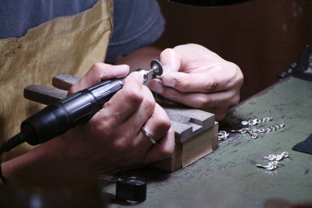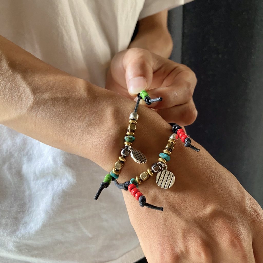 まず、一番拘ったのは日常性です。一つでも成立するけど、ほかのアクセサリーと重ねても楽しめるという使い勝手の良さを意識しました。そして中央のシルバーのモチーフもよく見ると文字が。シルバーの良さと彫ることで引き立つ様なデザインになっています。VIVIFYさんといえば、のピアスとかも最初考えたのですがそれだと人を選んでしまうので(ピアスの穴の有無)、季節問わず常に身につけて貰えるグッズを作りたかったですしブレスレットがいいのではないかと選びました。
